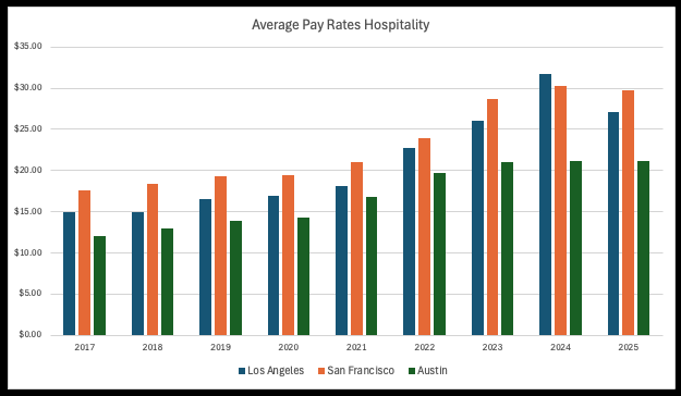 In 2025, the average hourly rate rose another $0.83 compared to 2024.