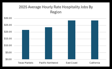 One of the biggest trends in 2025: Southern and lower-cost markets are seeing stronger increases. Average hourly growth by region: